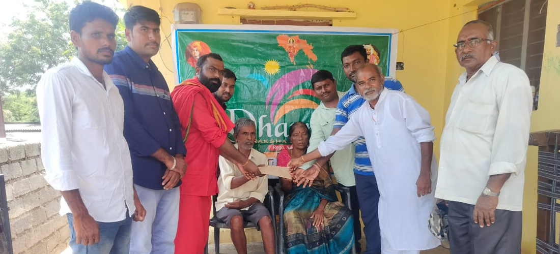 Under the guidance of Dharma Raksha Foundation, financial assistance was provided to a poor woman. Angothi Chapli, a resident of Nagarjuna Peta village in Thirumalagiri Mandal, was abandoned by her sons and daughters-in-law, leaving her to live alone. Upon learning about her situation through Dharma Raksha Foundation member Nenavath Shankar Naik, the foundation's president, Anumula Naveen Kumar, along with the support of foundation members, provided financial aid of ₹5,000 for essential supplies. The event was attended by Dharma Raksha Foundation’s honorary advisor Kommu Ramdas, secretaries Chintakayala Anji and Goli Mohan, assistant secretaries Nenavath Shankar Naik and Gundala Lakshmaiah, Nalgonda constituency members Arakala Ramakrishna, and other villagers.