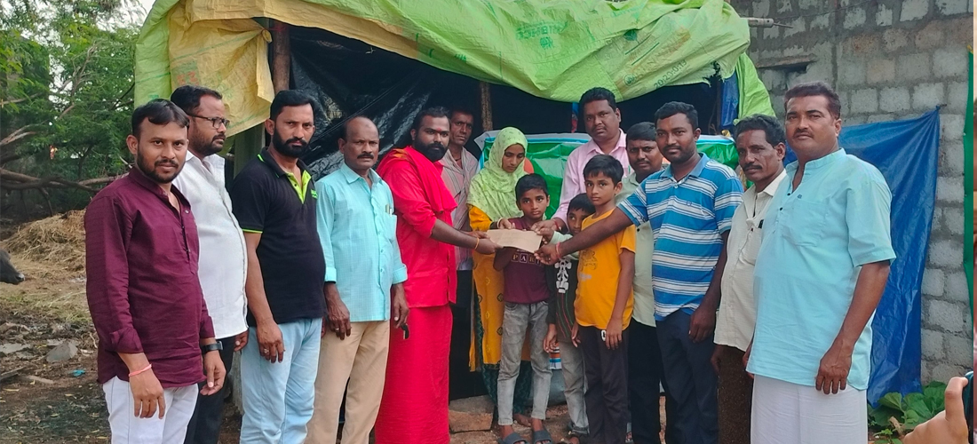 Under the guidance of the Dharma Raksha Foundation, financial assistance was provided to a poor family. Shaikh Kafir, a resident of Mukundapuram village in Nidmanoor Mandal, tragically passed away in a recent road accident, leaving behind his wife and three children. Upon learning about the situation through the foundation's secretary, Goli Mohan, the foundation's president, Anumula Naveen Kumar, along with the support of foundation members, provided financial assistance of ₹5,000 to the family. The event was attended by Dharma Raksha Foundation’s honorary advisor Kommu Ramdas, secretaries Chintakayala Anji, Goli Mohan, Medari Saidulu, assistant secretaries Nenavath Shankar Naik, Gundala Lakshmaiah, and Nalgonda constituency members Erakala Ramakrishna, Nagarjuna Rangayya, Akbar, Usman, Janimiya, Ibrahim, and other villagers.